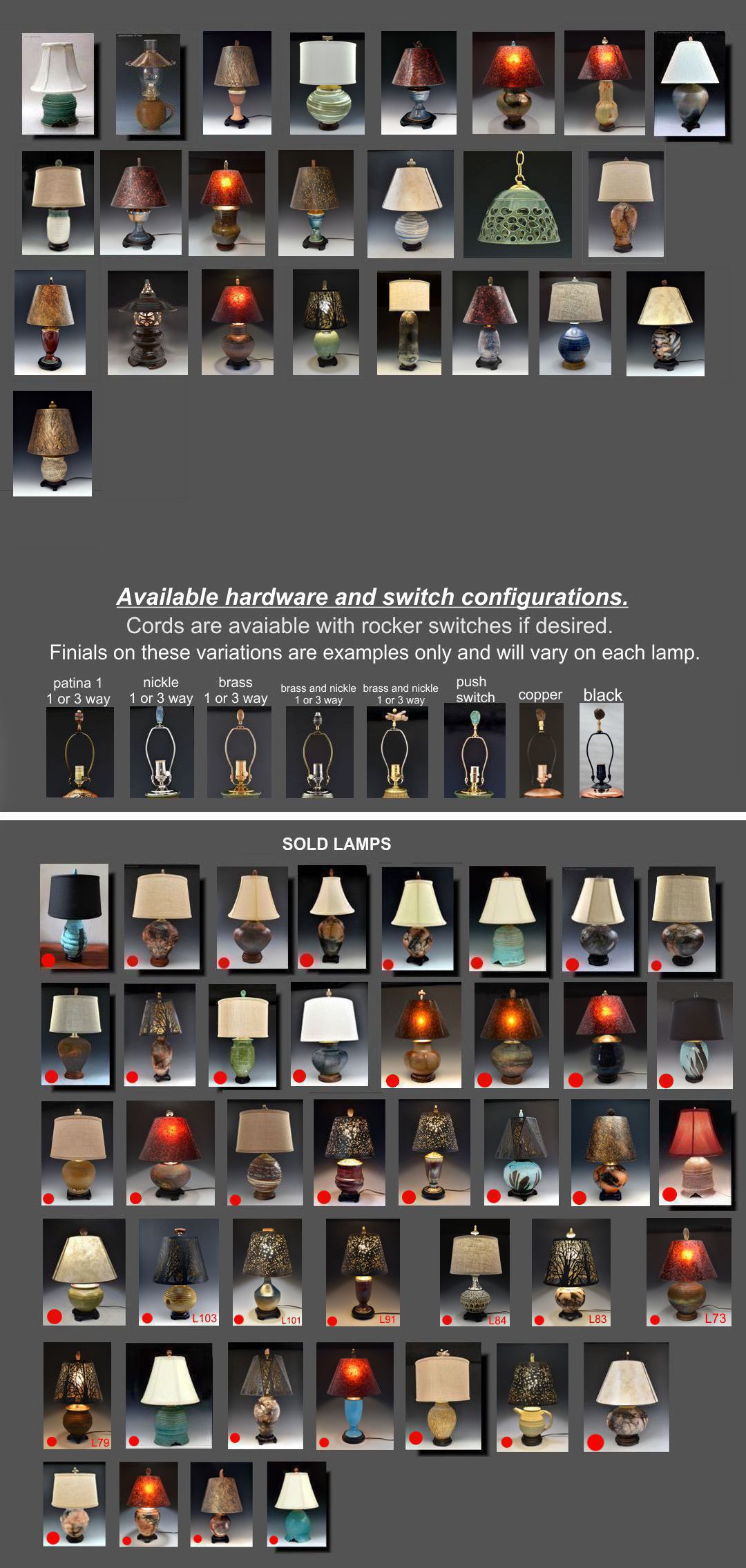 A selection of available, one-of-a-kind table lamps.