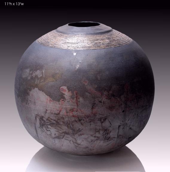 Raku Vessel, gold leaf collar.
